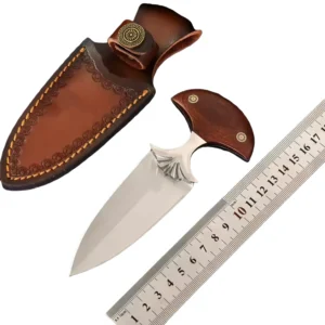 High quality Damascus push knife with red rosewood handle