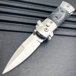 8.75 Inch Italiensk Stiletto Switch Kris Blade Fick Knife Svart med vitt handtag