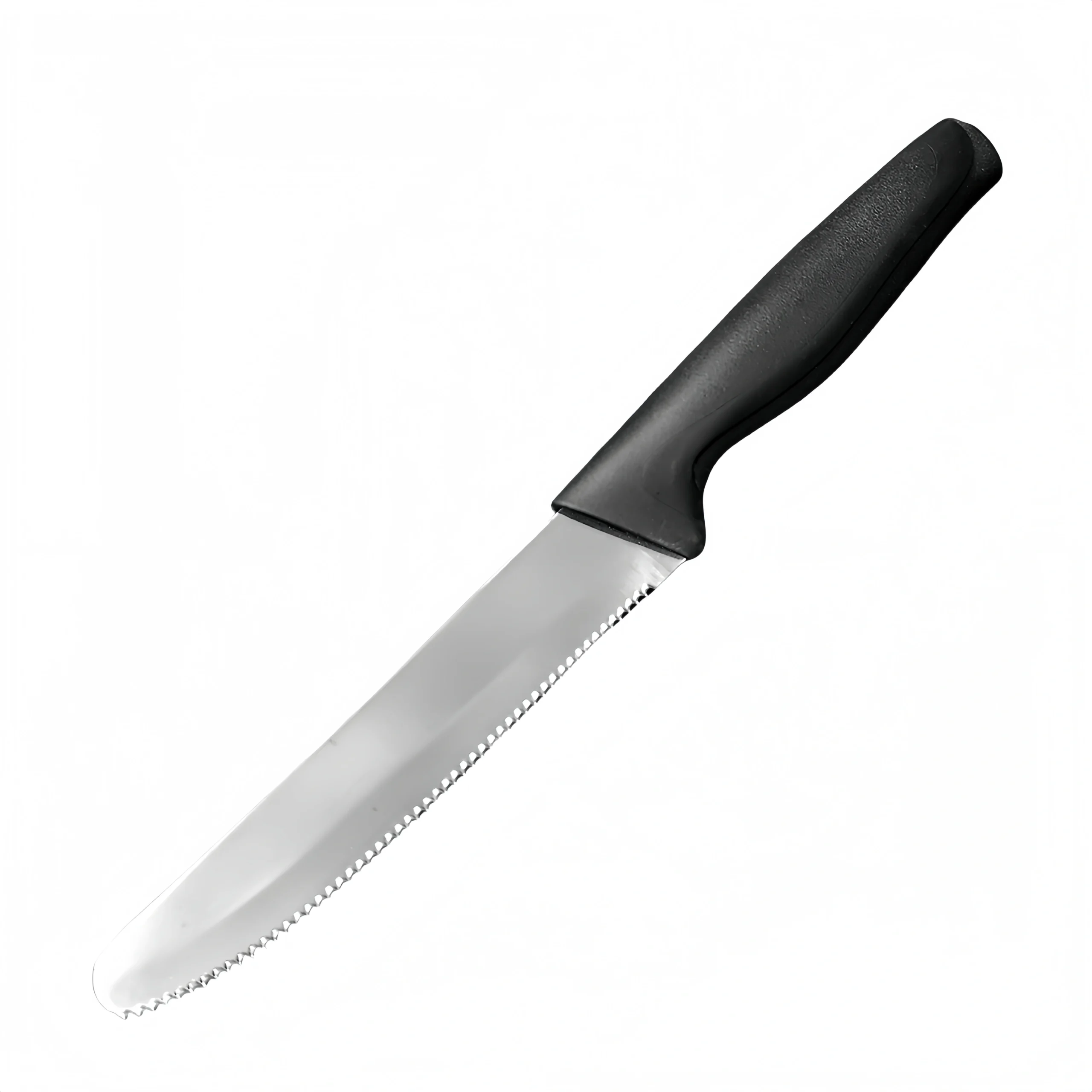 Rostfri st?lkniv med tandad rygg och praktiskt tr?handtag och plasthandtag